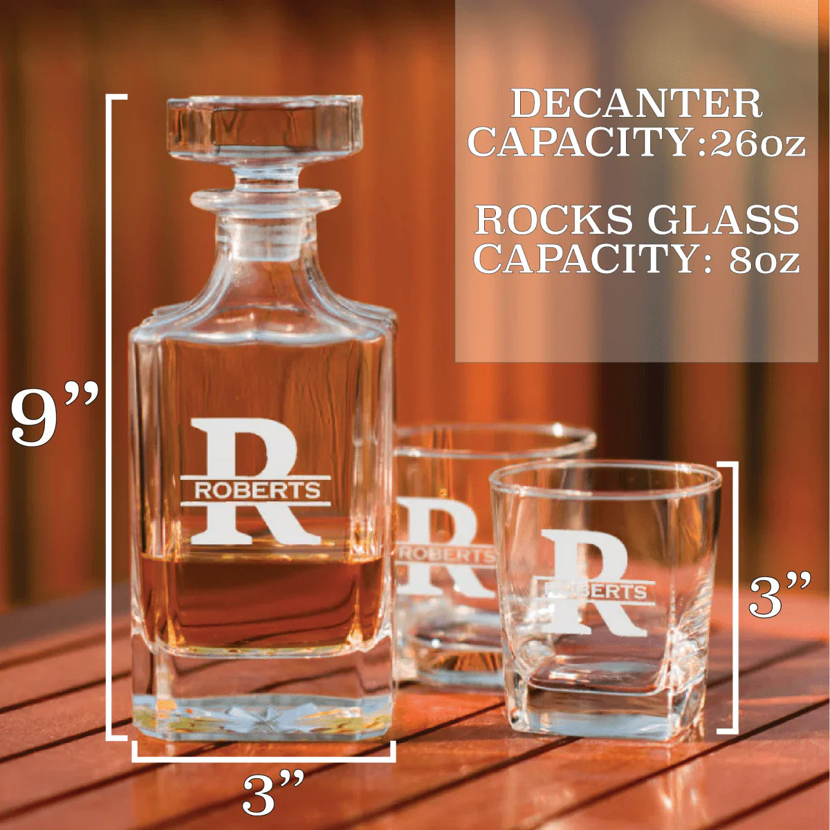 To personalize this decanter, please enter the name or initial in the personalization box that appears above the add to cart button. If you pick a design that has the name and a large letter, please enter the name and we will use the first letter of the name as the large letter.