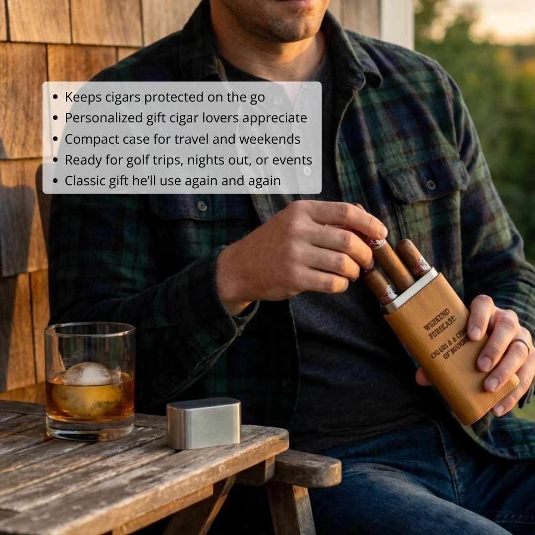 Personalizing this cigar travel case adds a thoughtful touch, making it a cherished keepsake for your groomsmen.