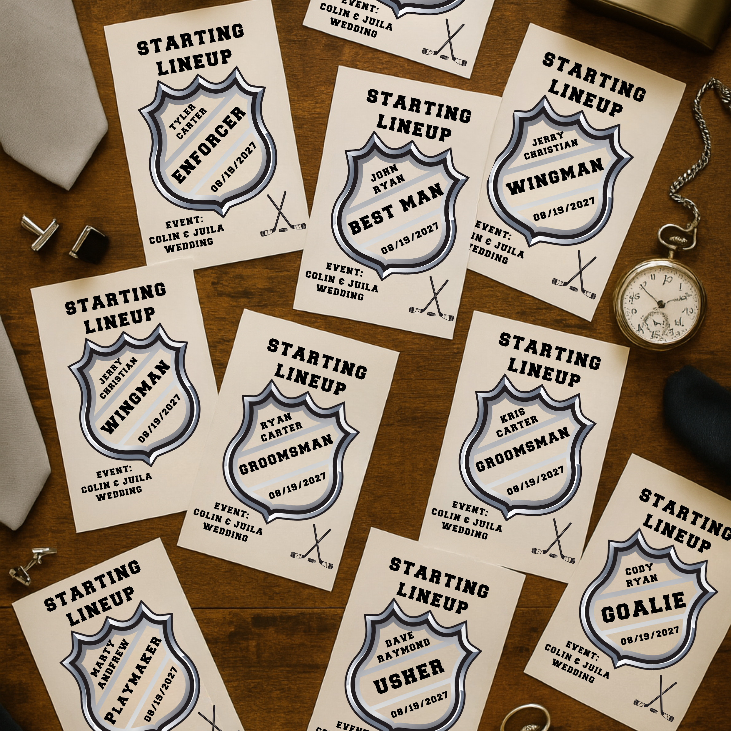 Asking your best guys to stand by your side on the big day should feel just as epic as game day. This Hockey Groomsmen Proposal Gift Set delivers the perfect combo of personal and badass: a bold, customized lineup card plus a 25oz engraved beer mug designed like a trophy for your inner circle. Whether you're building your starting lineup or naming your best man, this set scores big on thoughtfulness—with a strong pour of team spirit.