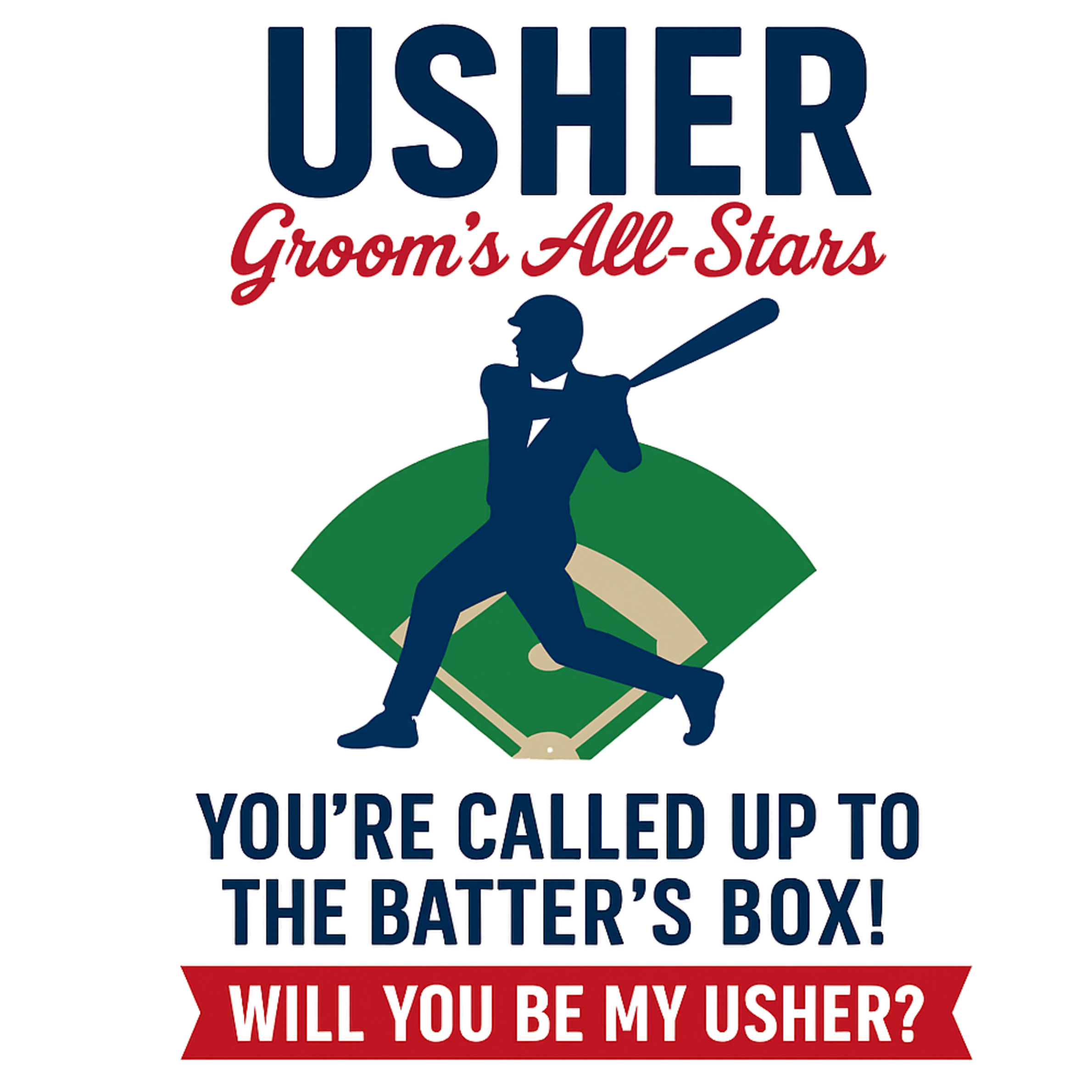 Each 4"x6" card is crafted on premium 80 lb cardstock with a rustic, smooth finish that feels intentional and keepsake-worthy. With vibrant colors and bold lettering, it’s a moment your guys won’t forget — just like the wedding day you’re inviting them to be part of. Because big league friendships deserve all-star proposals.