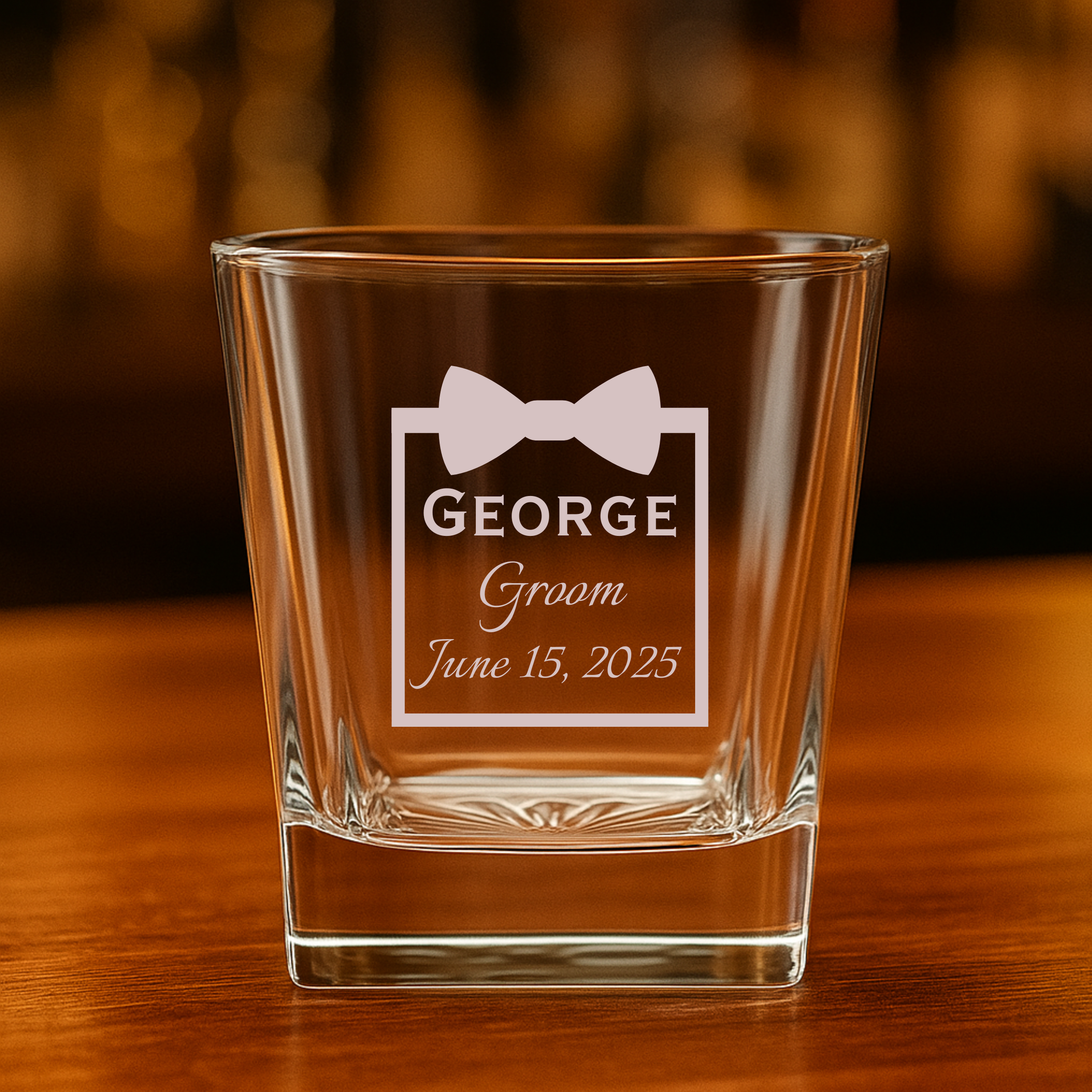 Enter their name, wedding role (Groomsman, Usher, Best Man, etc.), and the date. Each glass is engraved to order with lasting clarity and precision.