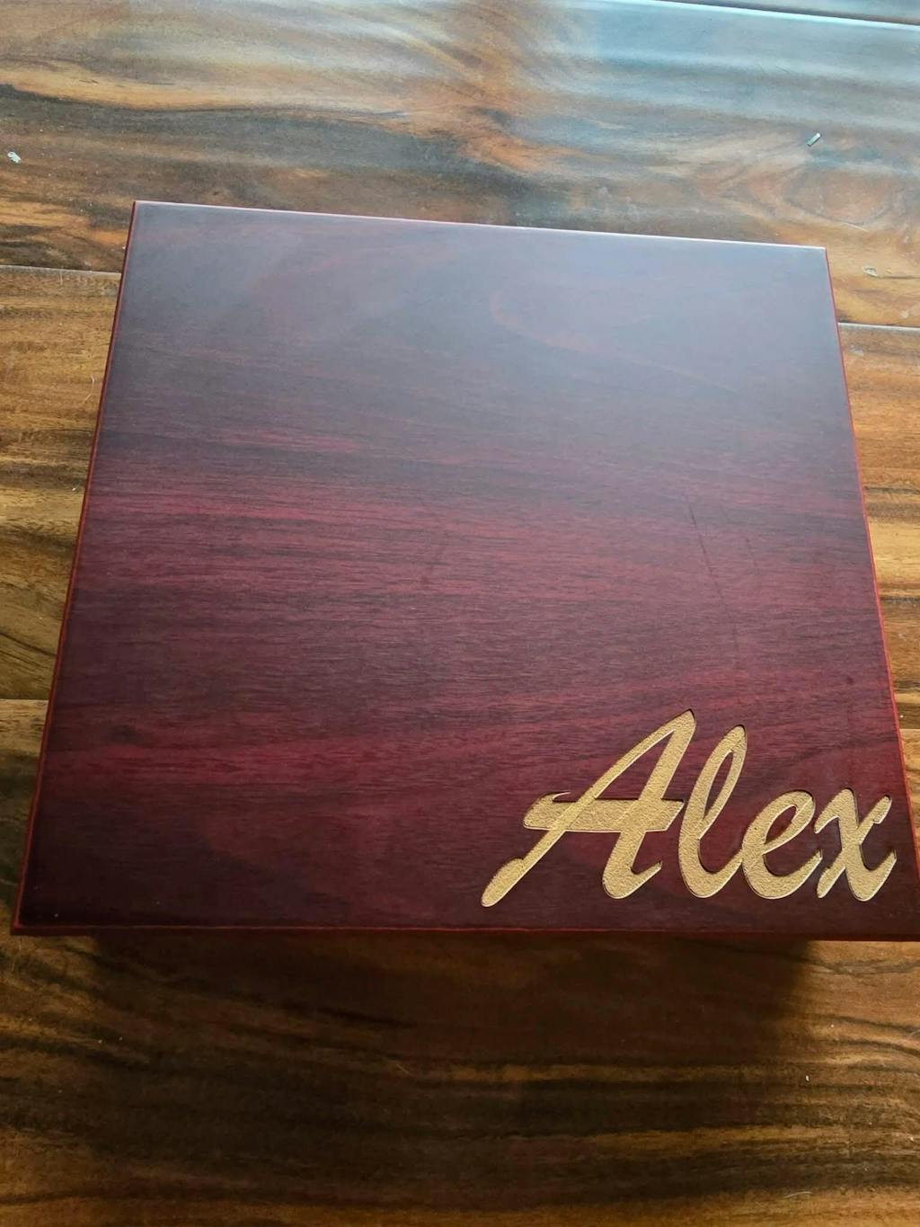 My brother received a personalized gift box from me. I did it for his birthday February 11th 2026 and his name is Jacob. So his name is on the leather wallet, carbon knife, multi-tool, and as well as the box it was all crafted in. So as the purchaser thank you very much for your service.