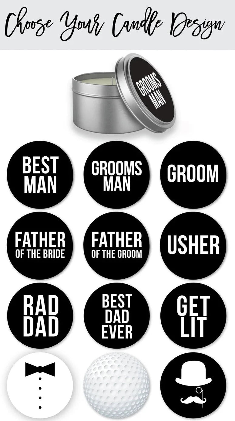 The flask and candle can be personalized with your groomsmen's initials and role. To do this please follow the example below and add it to the personalization box at the top of the page.