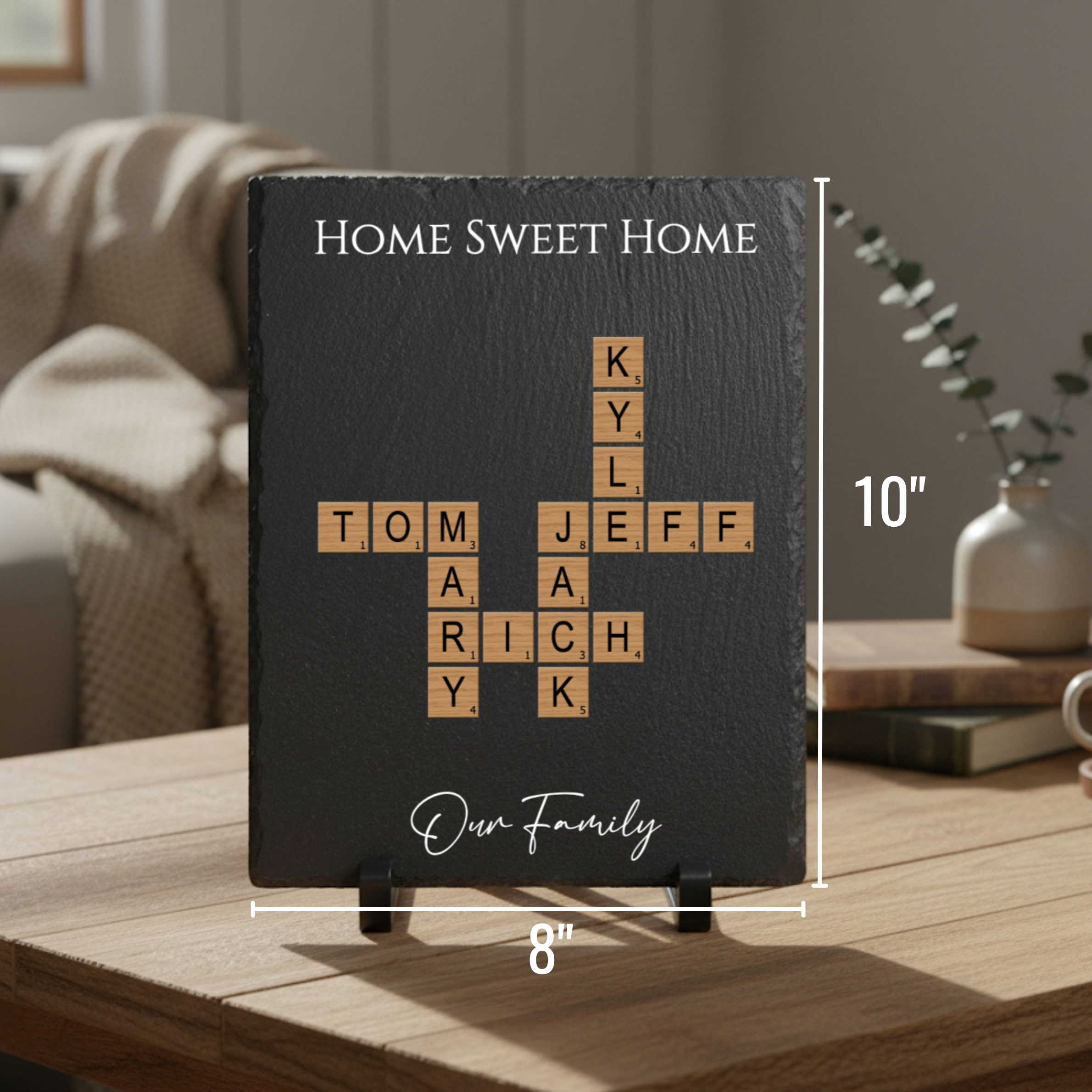 Honor the man who keeps everything running with this custom family crossword slate sign, designed to showcase the people who mean the most. Each name interlocks like a puzzle, creating a visual symbol of unity, love, and strength—perfect for celebrating the heart of your home.