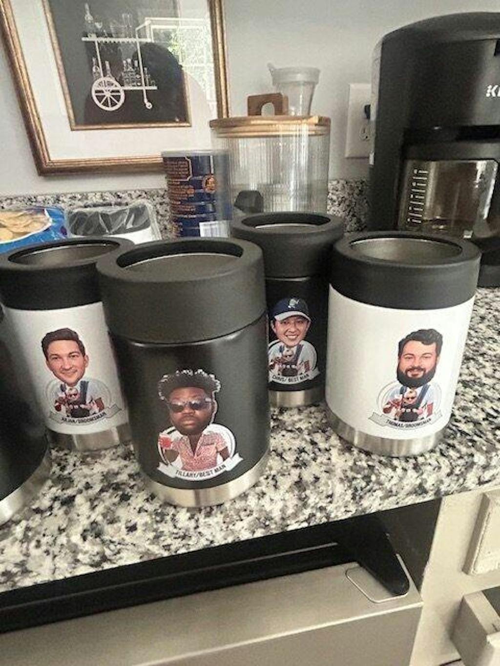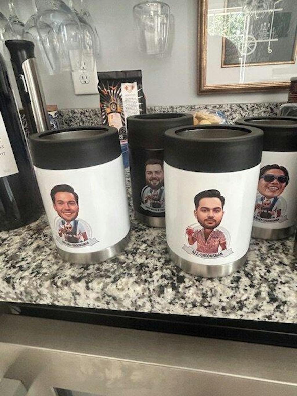 I ordered the caricature koozies and they are fantastic. You partners in crime standing up there with you will get a good laugh at these. Plus the koozies are high quality and they will definitely keep a brew cold. Thanks so much groovy groomsmen. They also came very fast!