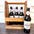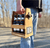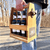 This carrier is constructed of fir wood, with a rustic look, and engraved with a cool deer antler design. It comes complete with an attached bottle opener, beveled edges, and a steel handle. The carrier sizes at 9” L x 5.63” W x 11” H and holds up to 6 bottles.