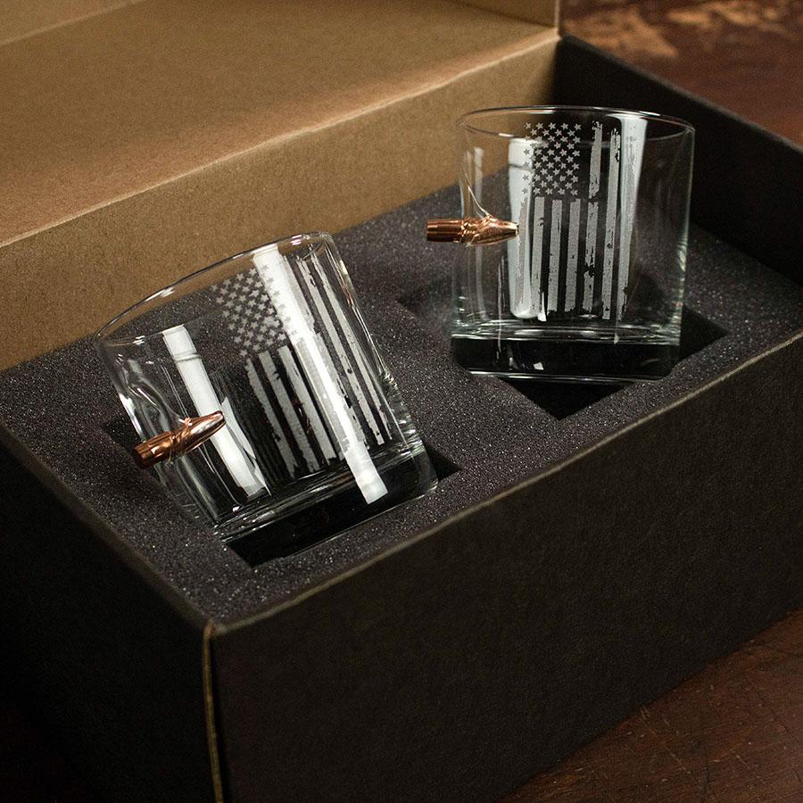 Expertly handcrafted in Wisconsin using U.S.-sourced materials, and paired with a solid copper bullet machined in Texas, every glass is a true testament to American craftsmanship. Packaged in a custom display box, it makes a standout gift for veterans, whiskey lovers, and patriots alike.