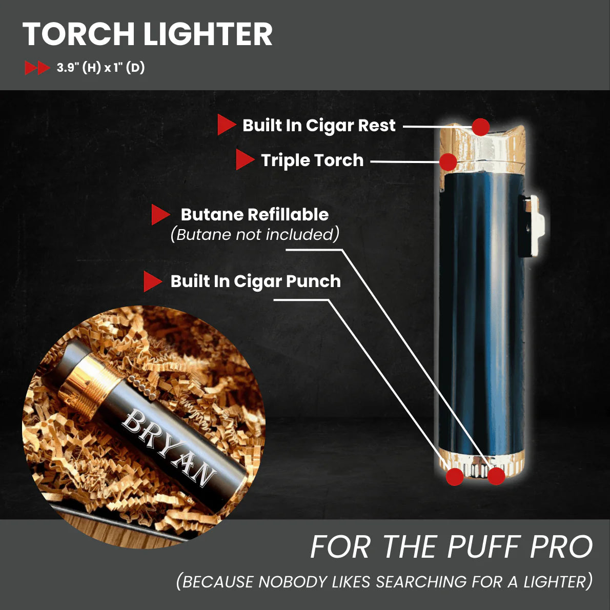 Butane refillable (ships empty)