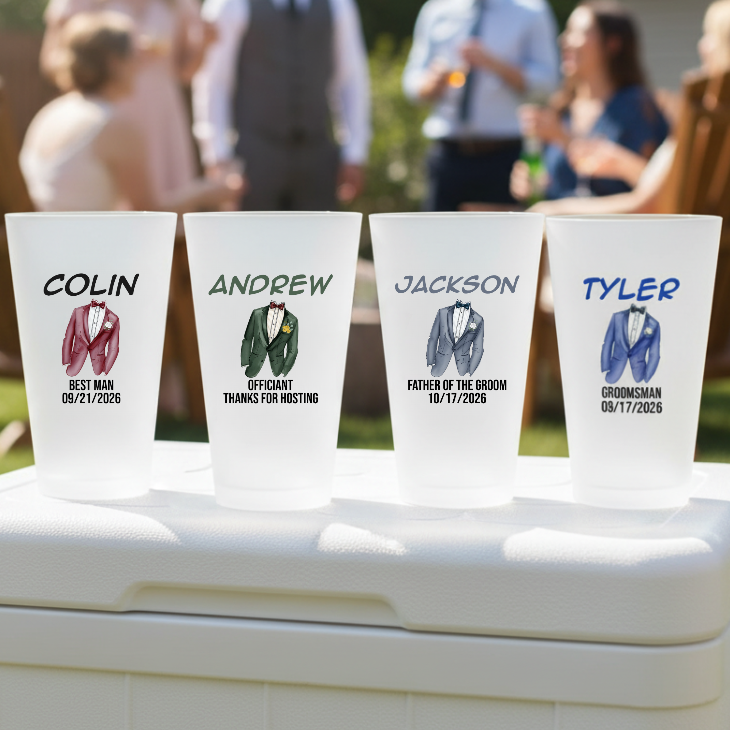 Full Personalized Roster: With a custom top line for their name and two additional lines for their role and the wedding date, no one will lose their drink during the celebration.