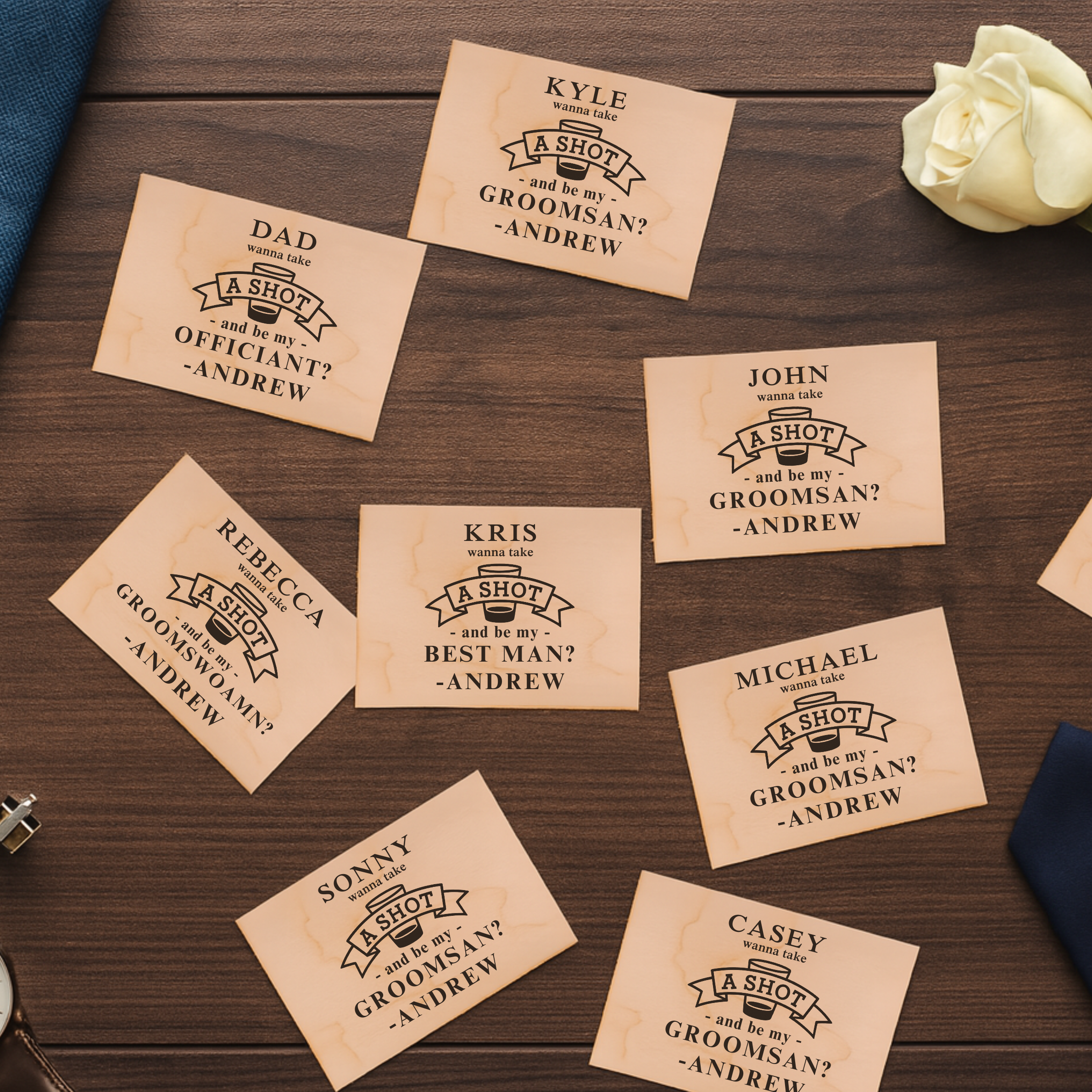 Each set includes a laser-engraved glass shot glass with their name, wedding role, and the year of your big day, plus a sleek wood proposal card that spells it out: “Wanna take a shot and be my groomsman?” It’s playful, heartfelt, and guaranteed to get a “yes” (followed by a toast). Choose from “Groomsman,” “Best Man,” or “Usher” and give them a keepsake they’ll display long after the last round.