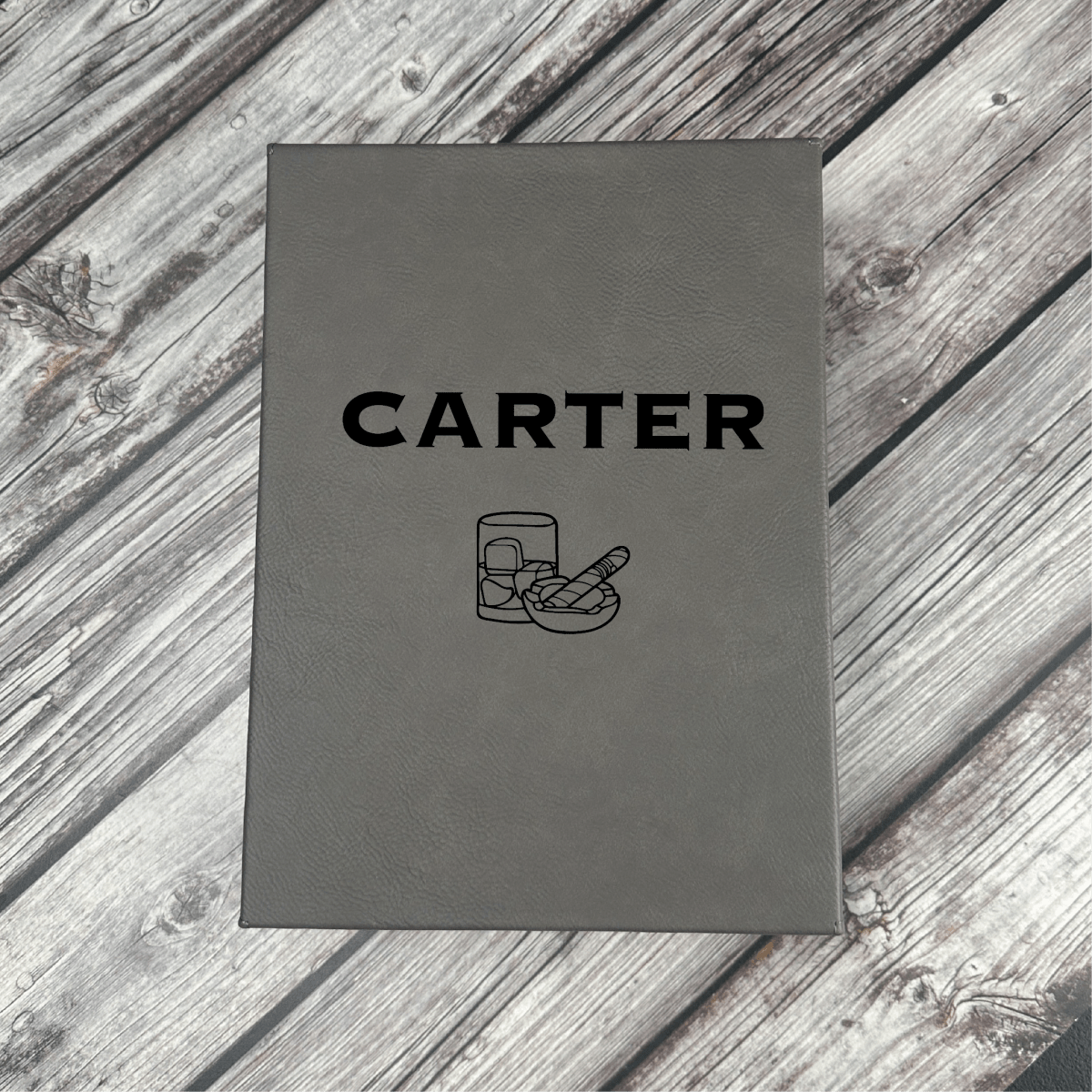 This cigar set can be easily personalized with your guy's name. Please enter his information into the personalization box at the top of the page as shown in the example below.