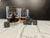 This set includes 2 hand-blown clear whiskey glasses with a frosted personalization on the front and 9 custom whiskey stones.